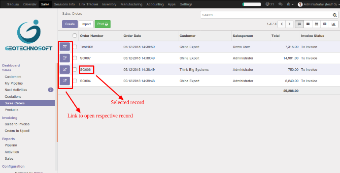 Here is an example of the Sale Order Screen, clicking on the button opens the record in a new tab.